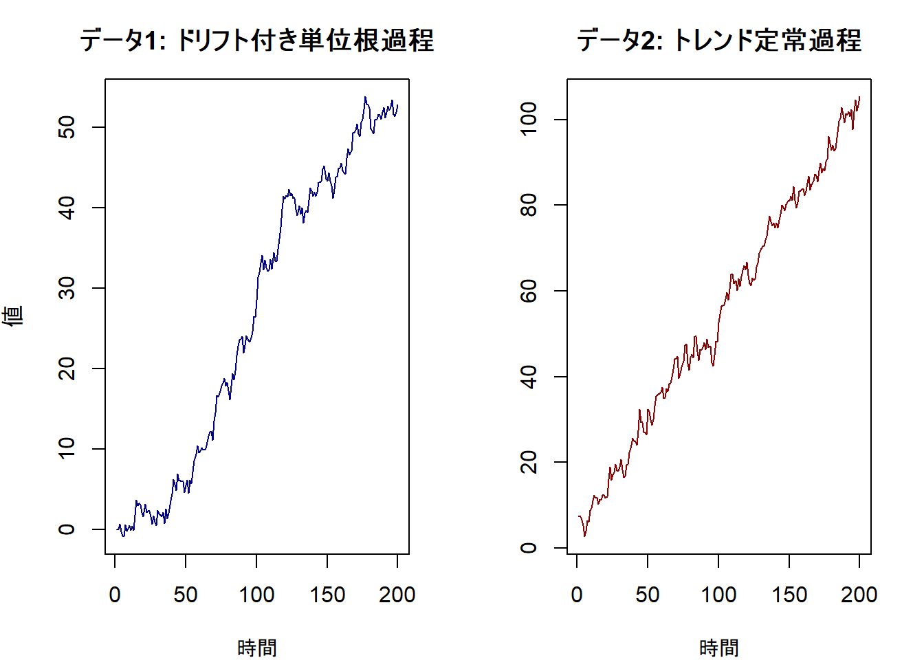 これらの結果を総合すると、「この時系列データは確定的な時間トレンドの周りで変動する、トレンド定常過程である」と結論付けられます。データ生成時の設定とも一致しており、検定がデータの性質を捉えていることが確認できます。