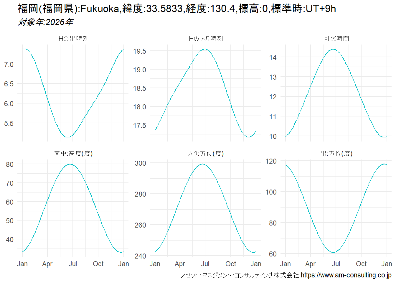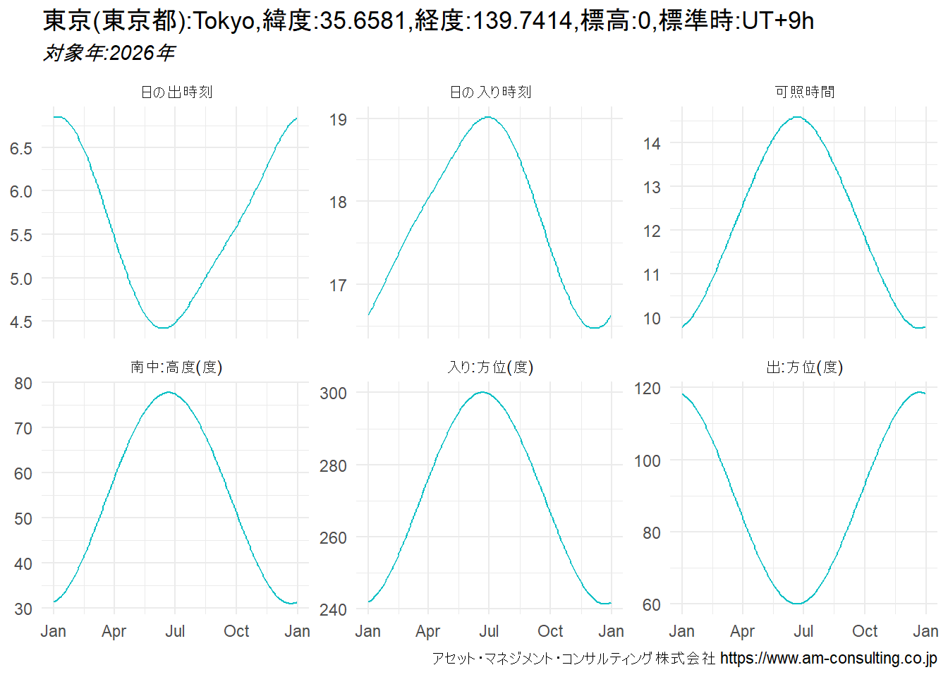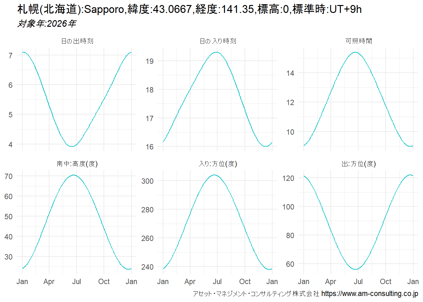 日本の各地点の日の出入り時刻、日照時間、南中高度:2026年版 https://www.library.saecanet.com/sunrise-and-sunset-in-japan-2026